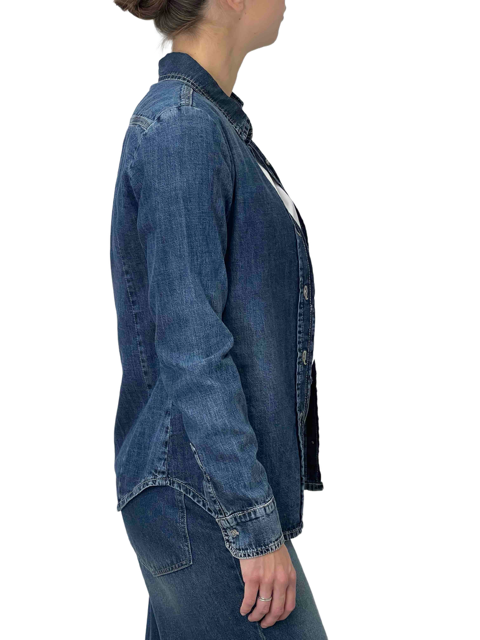 Camicia di jeans a taglio regolare con chiusura a bottoni. Linea pulita e stile essenziale, in denim di qualità per un look casual e versatile, adatto a ogni occasione.