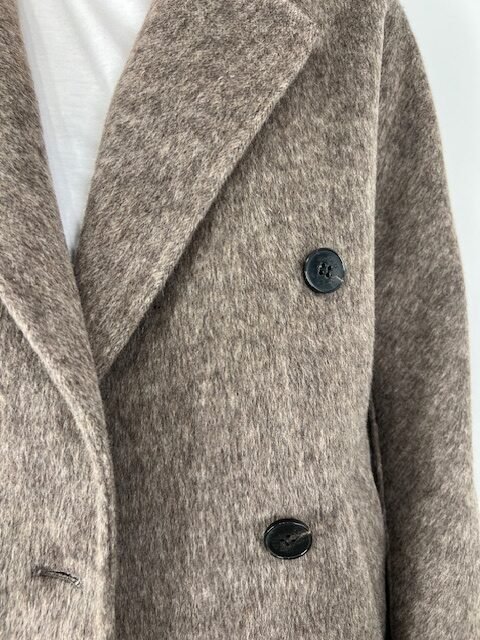Taglio moderno e linee morbide: questo cappotto doppiopetto corto con manica scesa unisce eleganza e comfort, ideale per uno stile sofisticato ma quotidiano.