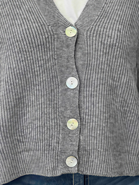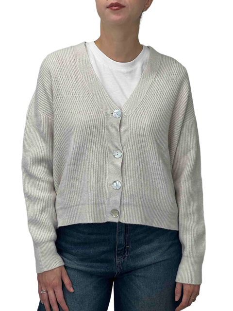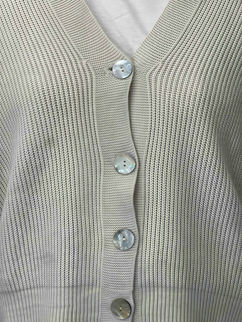 Cardigan versatile e femminile in maglia a coste, con pratica chiusura a bottoni e lunghezza al bacino. Perfetto da indossare da solo o sopra una t-shirt per un look casual e curato. Ideale per ogni stagione.