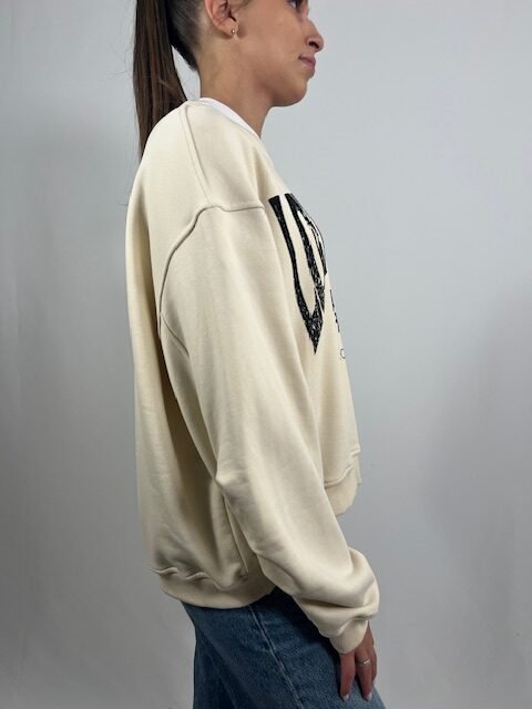 Felpa over urban con scritte grafiche, dallo stile deciso e contemporaneo. Perfetta per un look streetwear comodo e di tendenza.