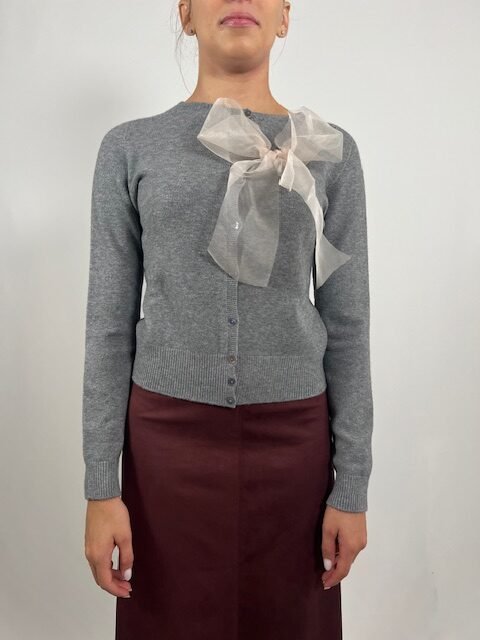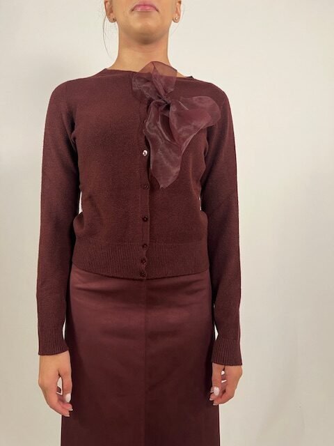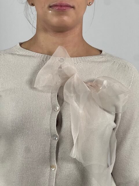 Giacchino corto con bottoni decorativi e spilla applicata sul davanti. Un capo dal gusto raffinato, ideale per completare con stile ogni outfit.