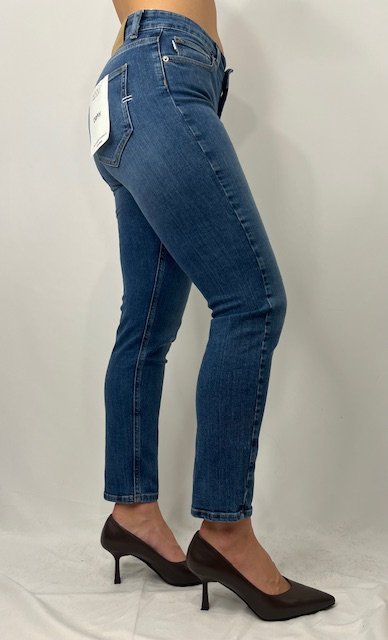 Jeans a gamba stretta con vestibilità slim, aderenti senza effetto leggings. Realizzati in denim strutturato con una leggera elasticità per garantire comfort e libertà di movimento. Vita regolare, chiusura con zip e bottone, tasche funzionali.