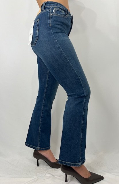 Jeans bootcut a vita media con gamba aderente fino al ginocchio e leggera svasatura al fondo. Realizzati in denim confortevole, valorizzano la silhouette e si adattano perfettamente a ogni tipo di calzatura. Chiusura con zip e bottone, tasche funzionali.