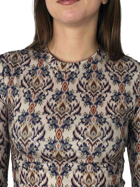 Maglia a girocollo dal fit aderente, perfetta per valorizzare la silhouette. Versatile e facile da abbinare, ideale per look casual o più sofisticati.