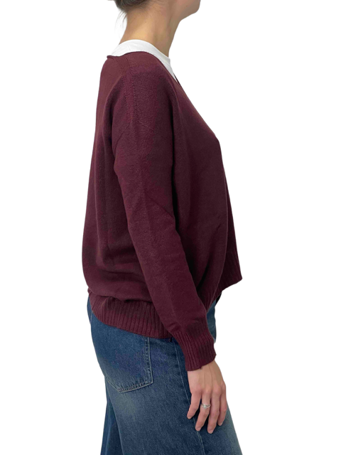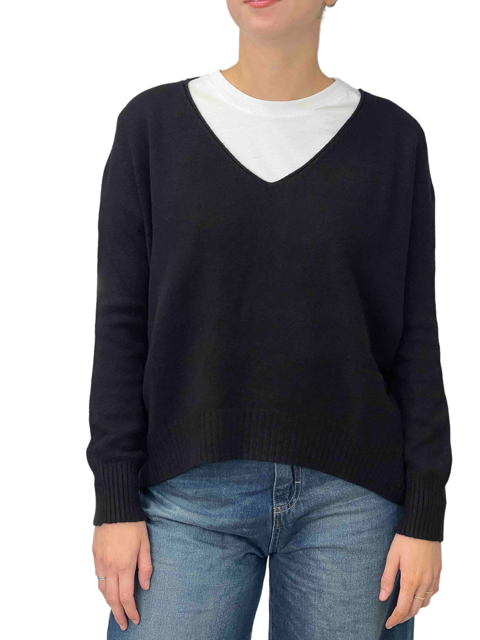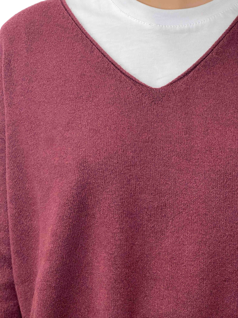 Maglione over asimmetrico con scollo a V. Morbido e confortevole, dona un look moderno e rilassato grazie al taglio ampio e alla linea irregolare. Perfetto da abbinare a jeans o leggings per uno stile casual e chic.