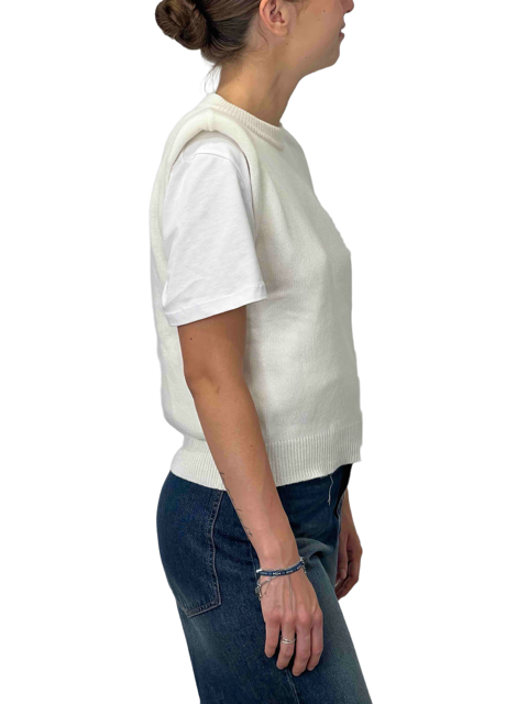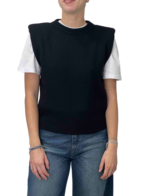 Maglia smanicata dal taglio pulito, con spalline strutturate e vestibilità regolare. Un capo versatile e contemporaneo, perfetto da solo o sotto giacche e blazer.