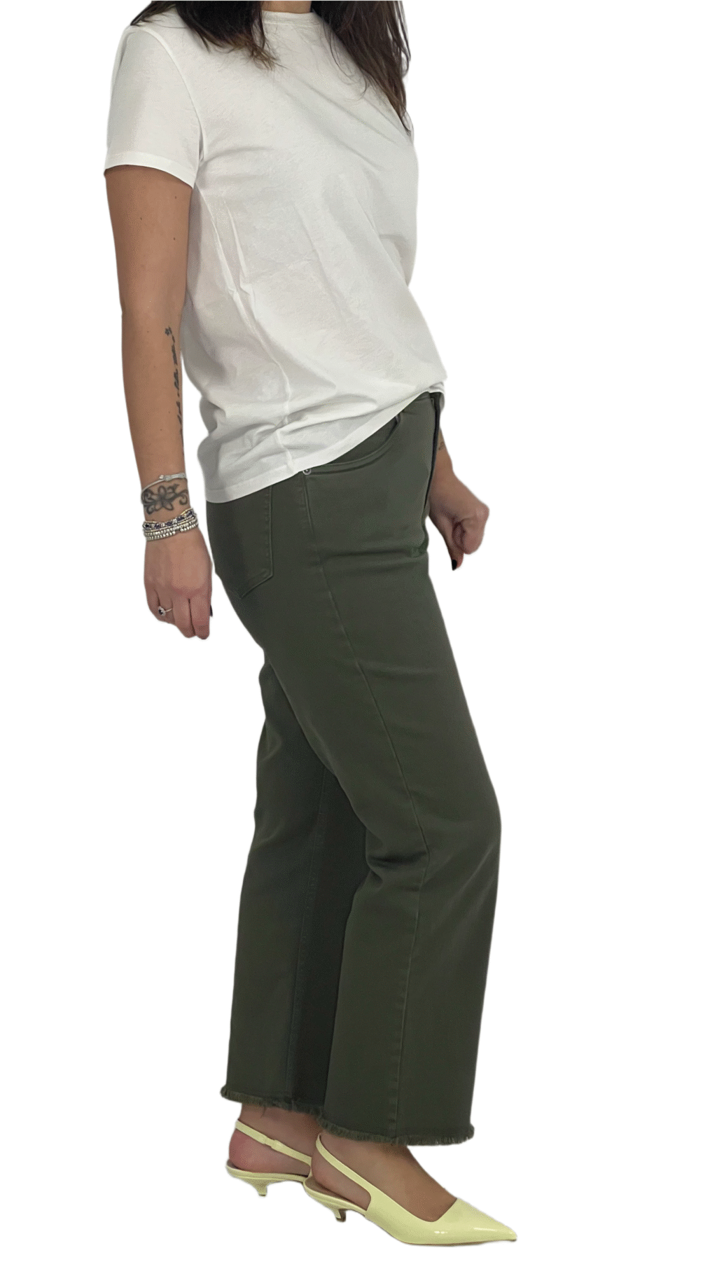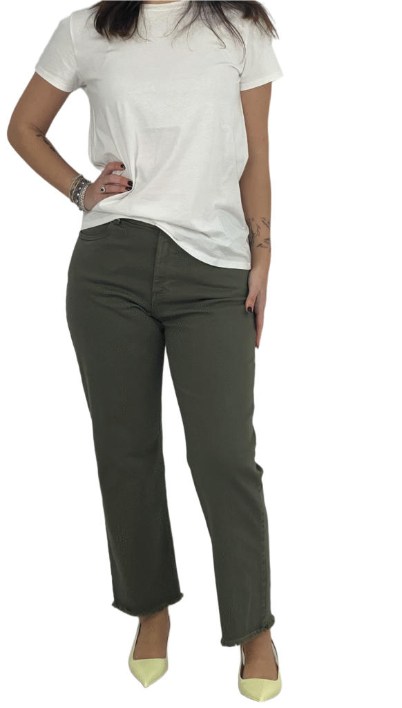 Pantalone a gamba stretta con fondo sfrangiato, un modello moderno e di tendenza perfetto per look casual e contemporanei.